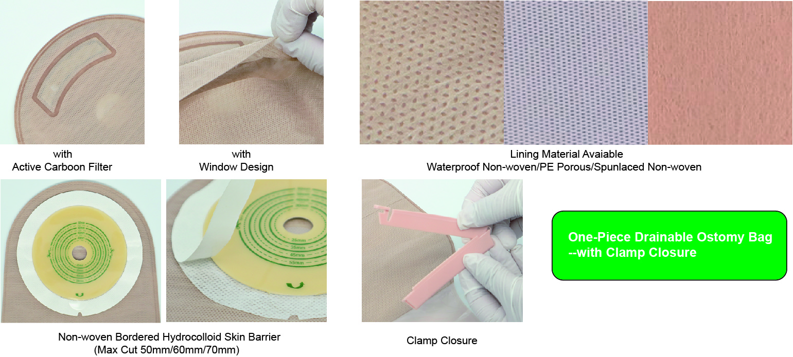 | 4008 | One-piece Open Ostomy Bag, Clamp Closure, Hydrocolloid+Non-woven Skin Barrier with Max Cut 50mm | 20pcs/box, 400pcs/carton |