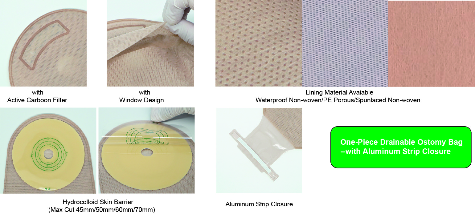 One-piece Open Ostomy Bag, Aluminum Strip Closure, Hydrocolloid Skin Barrier with Max Cut 60mm |